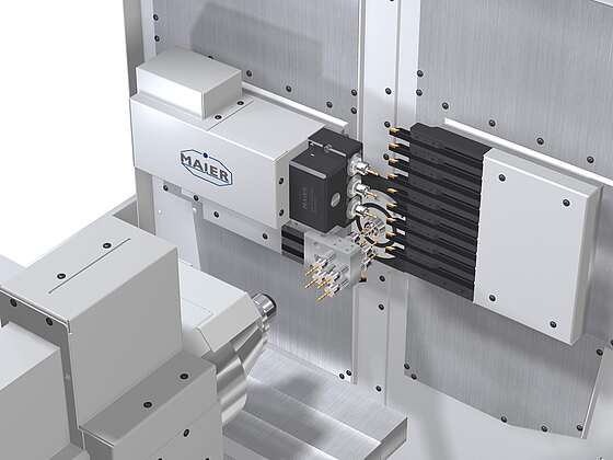 Linearmotoren gewährleisten höchste Dynamik. Das Modell ist mit 26 Werkzeugen ausrüstbar und erreicht Eilgänge von 40 m/min.